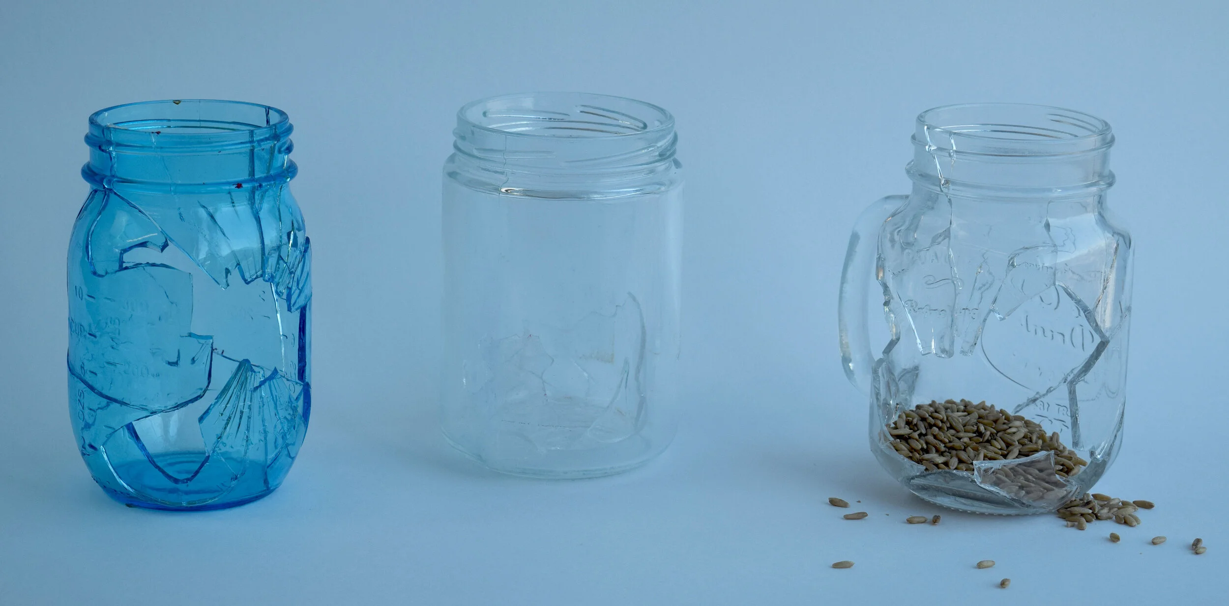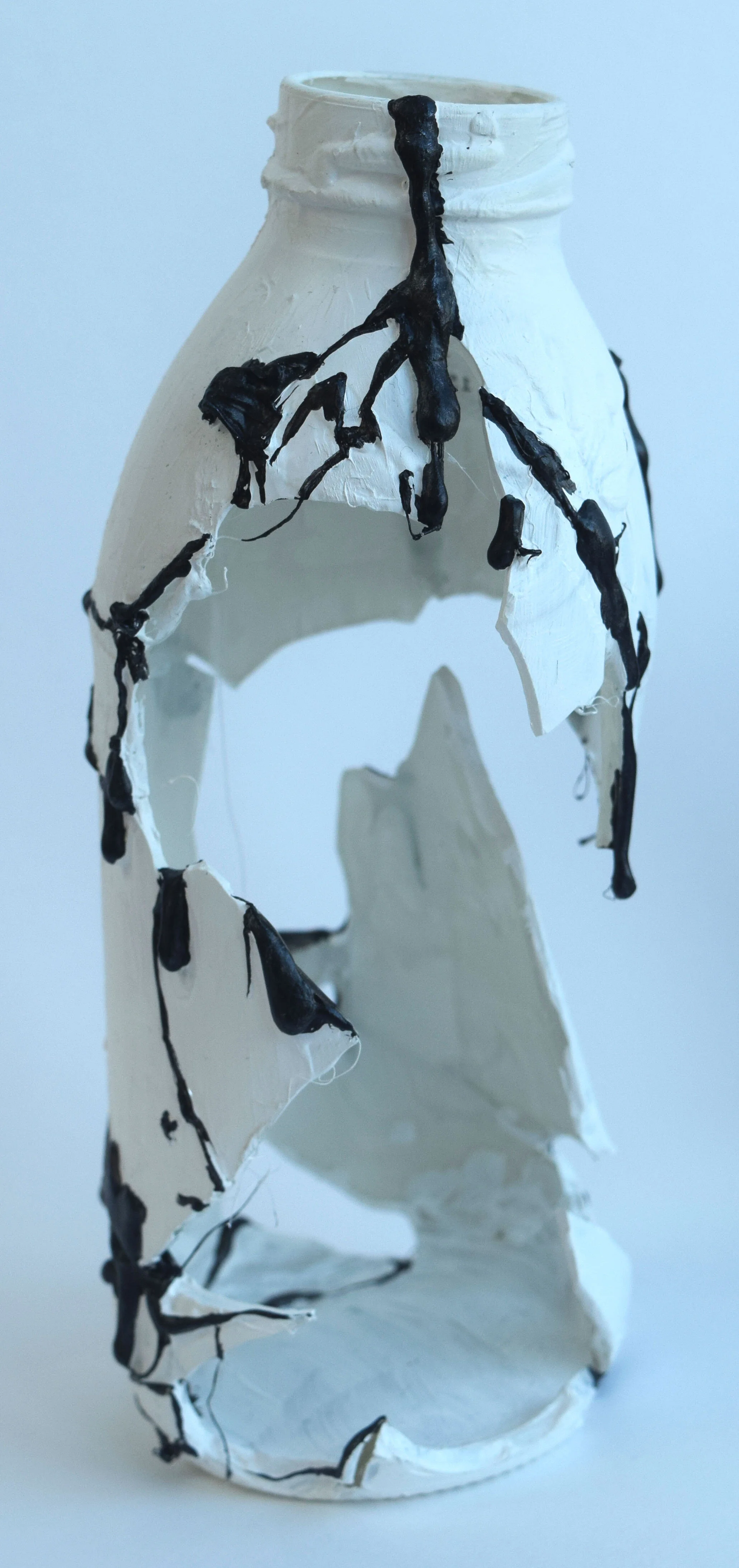 Similarly, pieces like “Cracked” and “Shatter” are focused more on the impact of the damaged vessel rather than the contents. The main focus of these pieces was the meticulous process by which they were broken and reassembled; meant as a reflection piece for both the artist and audience about the value of time and containment. If glass has been broken, can it ever be repaired to its original state? Will the contents be forever lost? These questions reflect back to the struggle of knowing how and when to answer a child’s quandaries.